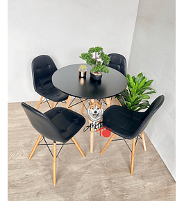 Comedor Indonesia (Mesa melamina cuadrada negra 80x80 + 4 Sillas eames)
